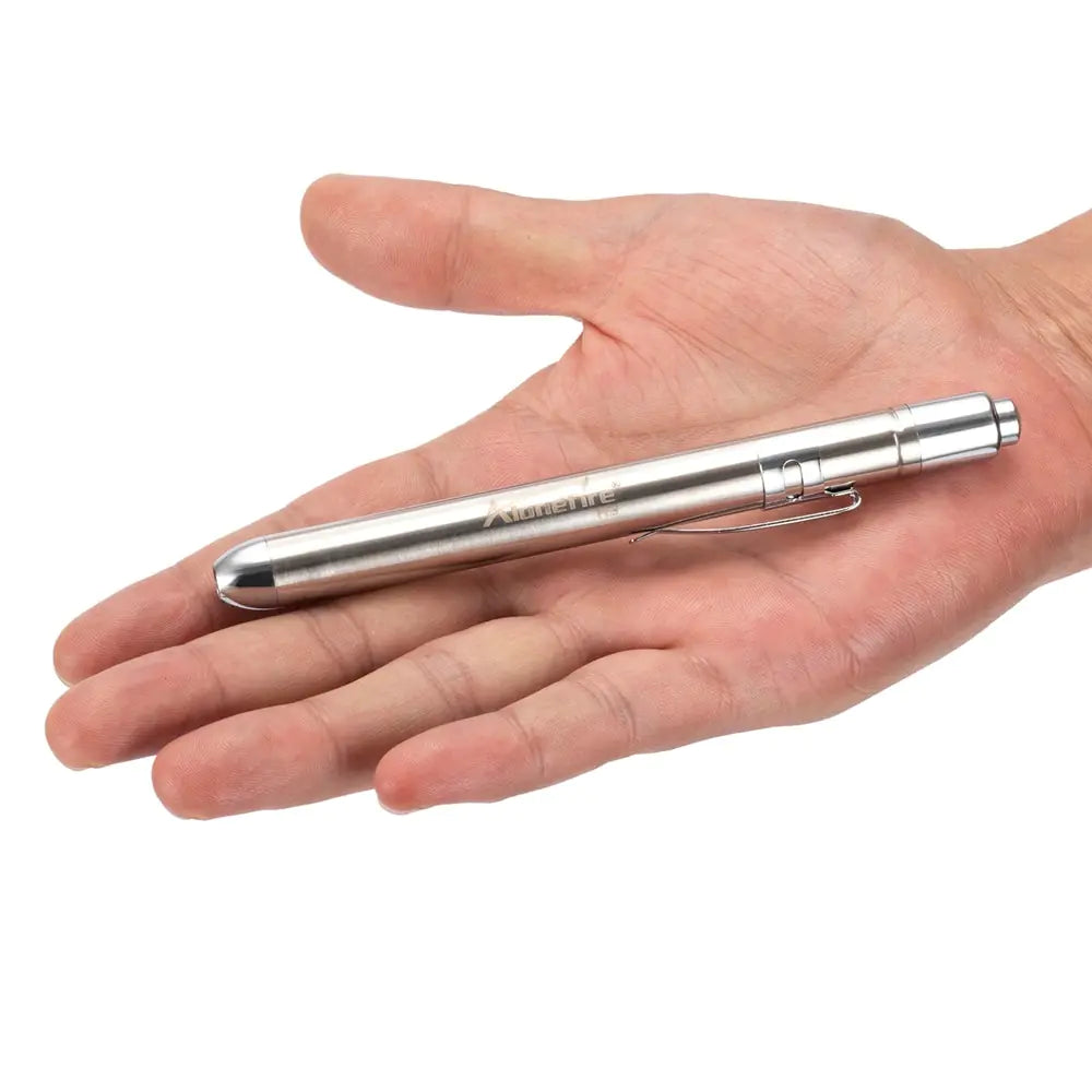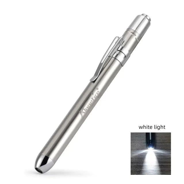Crafted with an ultra-lightweight design, this flashlight is perfect for a multitude of activities, from medical inspections to reading, nighttime walks, camping, hiking, repairs, power outages, dog walks, and more. Experience the convenience and reliability of our Mini/Pen Flashlight.