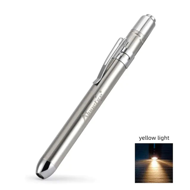 This versatile Mini/Pen Flashlight comes in two different lighting modes, white light or yellow light. Whether you're inspecting, assessing, or exploring, this compact flashlight has got you covered with its white and yellow light options. The white light is ideal for detailed inspections, while the yellow light is gentle on the eyes for assessments—a complete lighting solution for various scenarios.